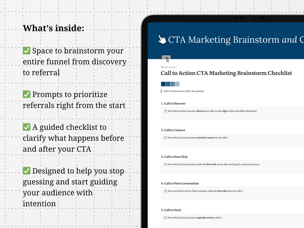 Call to Action Marketing Brainstorm and Checklist Notion Template