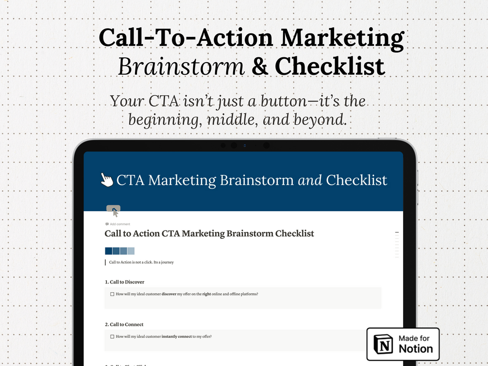 Call to Action Marketing Brainstorm and Checklist Notion Template