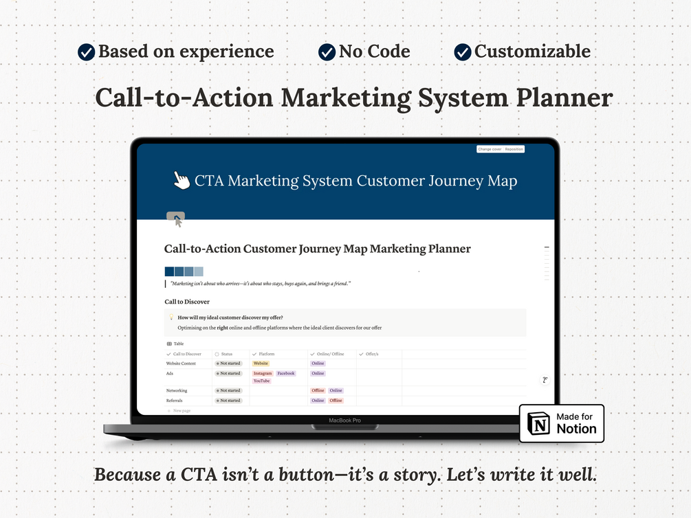 Call to Action Customer Journey Map Marketing System Notion Planner